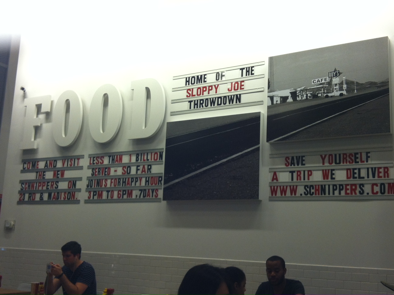 The unassuming facade of Scnippers Quality Kitchen (looks kinda like a Duane Reade to me) and just one block away from the crazy haze of Times Square. There are Only Two Locations (as of writing) and they are both here in New York City.